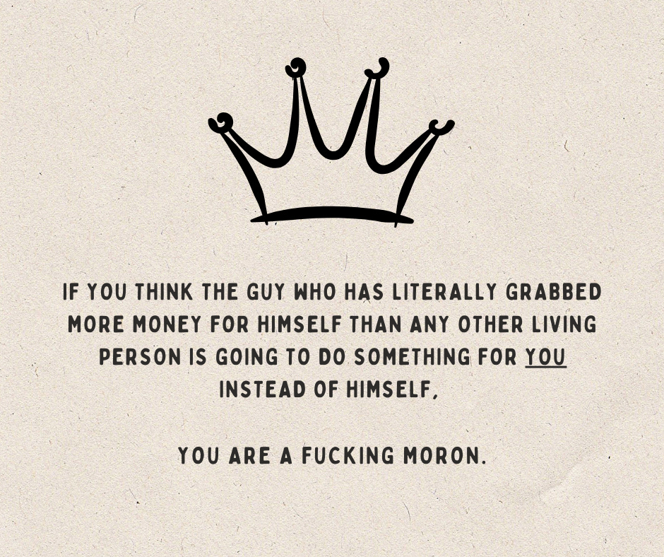 Well, she recognizes that when it comes to the only measure of social power that she cares about, money, that she’s not at the top. There was that pesky series of federal and state criminal charges that had to be dealt with by winning the 2024 election. And that $84 million civil judgment that has to be paid, or Mar-a-Lago goes away like Rudy Giuliani’s condo.