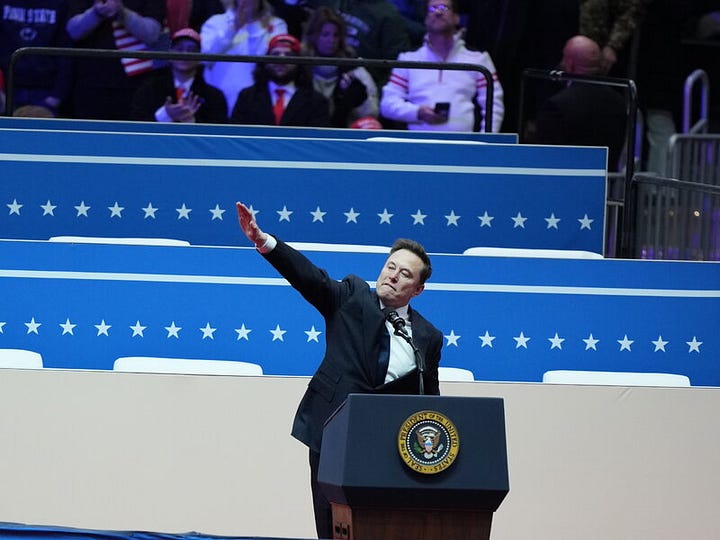 Like George W. Bush standing on an aircraft carrier flight deck with the words MISSION ACCOMPLISHED emblazoned behind him, Musk’s celebration of The Triumph of the Will was way premature. Bush did it to sell a long war, by claiming the war was so short it was already over; it is conceivable Musk has the same intentions. Regardless, he branded himself a Nazi, which makes all he owns subject to his personal philosophy.