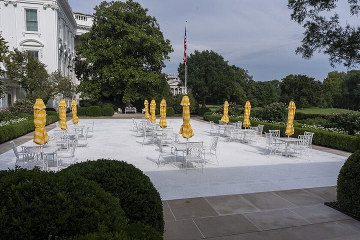 Instead, he watched the White House Rose Garden turned up and covered in patio stone.