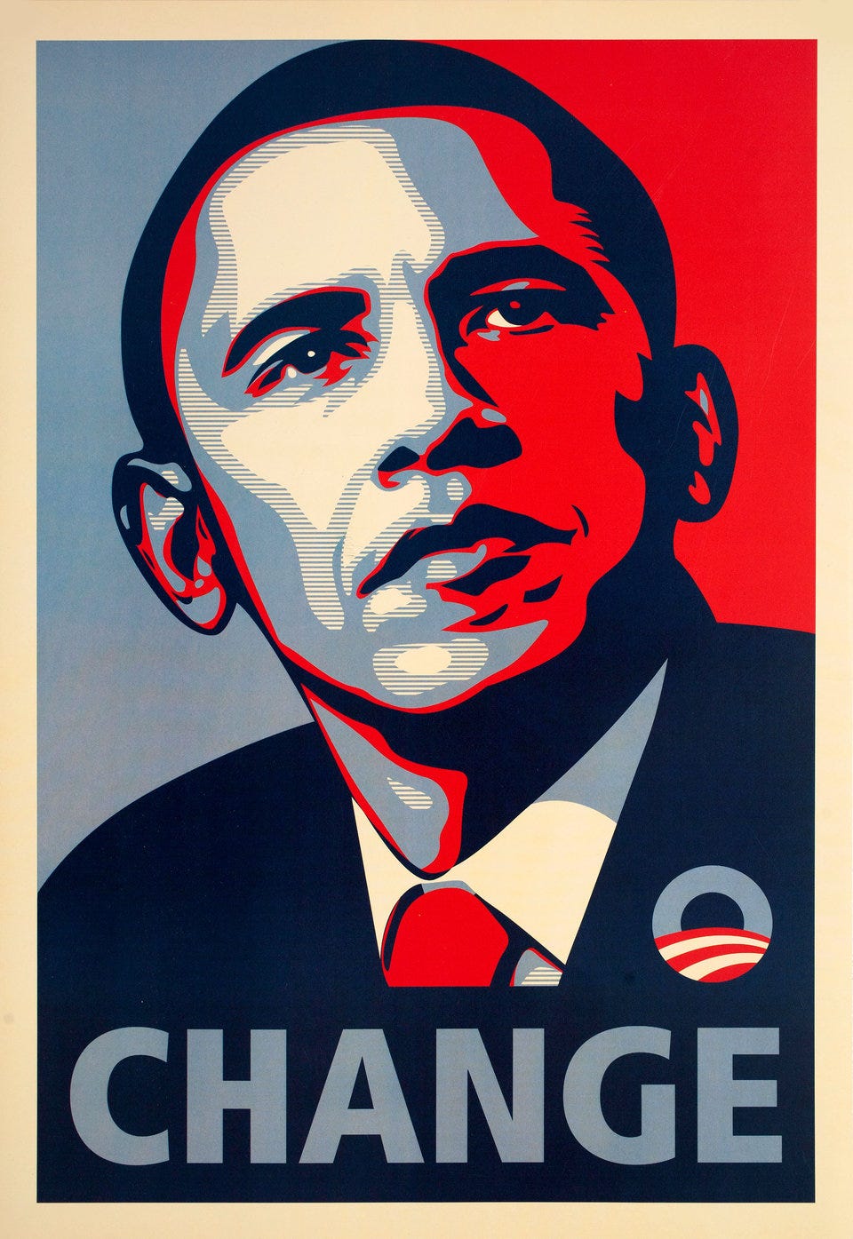 So Obama faced GOP veteran Senator John McCain in the general election, and won on the messages of “Hope & Change.” The economy was in recession, the housing market collapsing, unemployment was spiking (the Great Recession saw men generally abandoning neckties, even when they returned to working—this shift is worthy of deeper examination), and in 2008 the Republican candidate stood no real chance of winning.