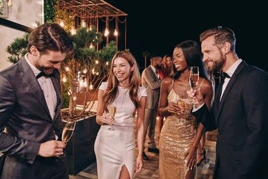 It was the grand opening of the new tallest building in North America, and the builders were holding a VIP party on the rooftop to celebrate. People were dressed in formal clothes, eating fancy food, and drinking expensive champagne.