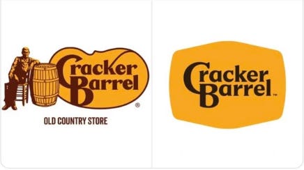 The Cracker Barrel logo has nothing to do with the quality of the food served, which will remain prepared in proletarianized, preportioned servings, ready for sous vide baths and microwaving. There is no evidence of public concern over the logo that preceded its redesign. The restaurant’s name is more prominent than before and unlike McDonald’s, the company never created an anthropomorphic mascot. No one complained when McDonald’s dropped the clown from its advertising in the 20th century, yet here we are with folks upset about the removal of a nameless figure. Dare we say it is because of the reputation the restaurant earned, over 20 years ago?