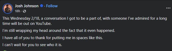 This Wednesday 2/18, a conversation I got to be a part of, with someone I’ve admired for a long time will be out on YouTube.