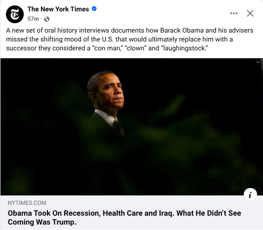 Barack Obama is selling nostalgia for a time with a kinder and gentler federal government, and indeed, he was not one to release a secret police force to erode civil liberties on the daily. But to envision his tenure as without class conflicts that drove the rise of the MAGA political movement, requires forgetting the people in the streets, directly communicating that we were in a value-distribution crisis that he did nothing about.