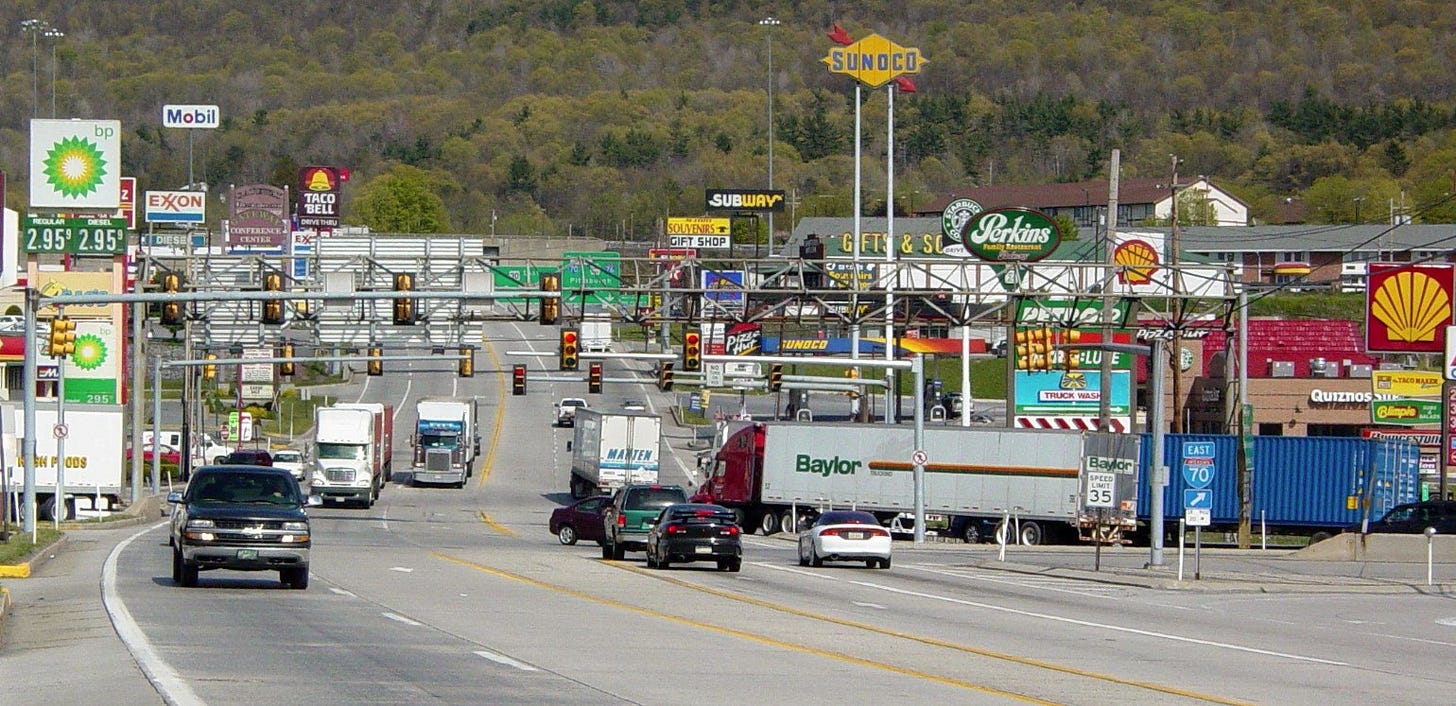 To this day, the suburban highway exit ramp spills into a commercial zone with gas stations, fast food joints, and car dealerships among the first businesses one drives past. The suburban landscape has to accommodate the technology that makes it possible.