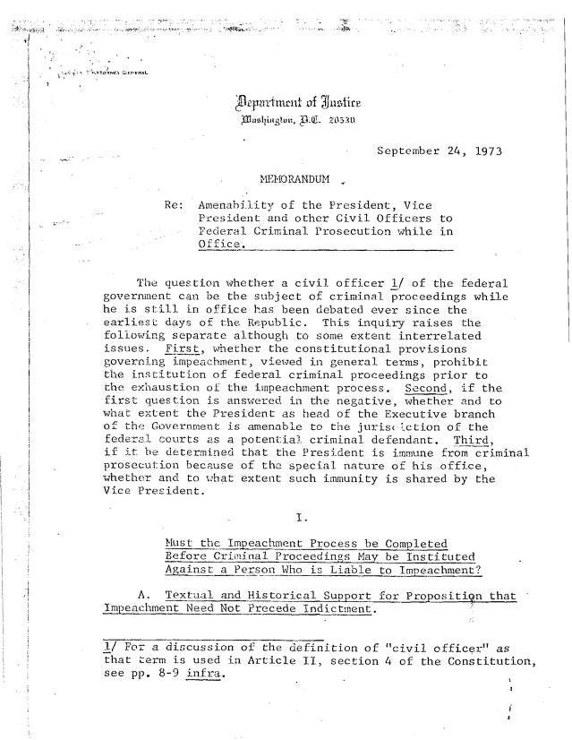 The existence of the memo shows it was understood that the occupant of the office could hypothetically commit crimes.