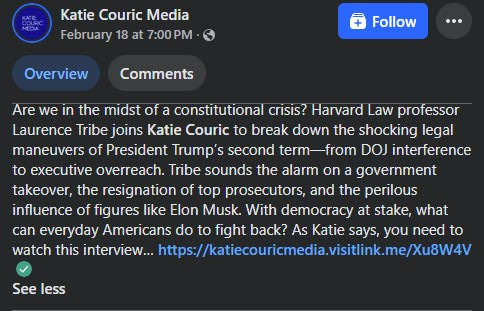It comes as no surprise that the topic of “Constitutional Crisis” was brought up recently by Katie Couric and other admirals of the broadcast network fleet. However, they are reluctant to place such a label on what has happened since Inauguration Day, 2025.